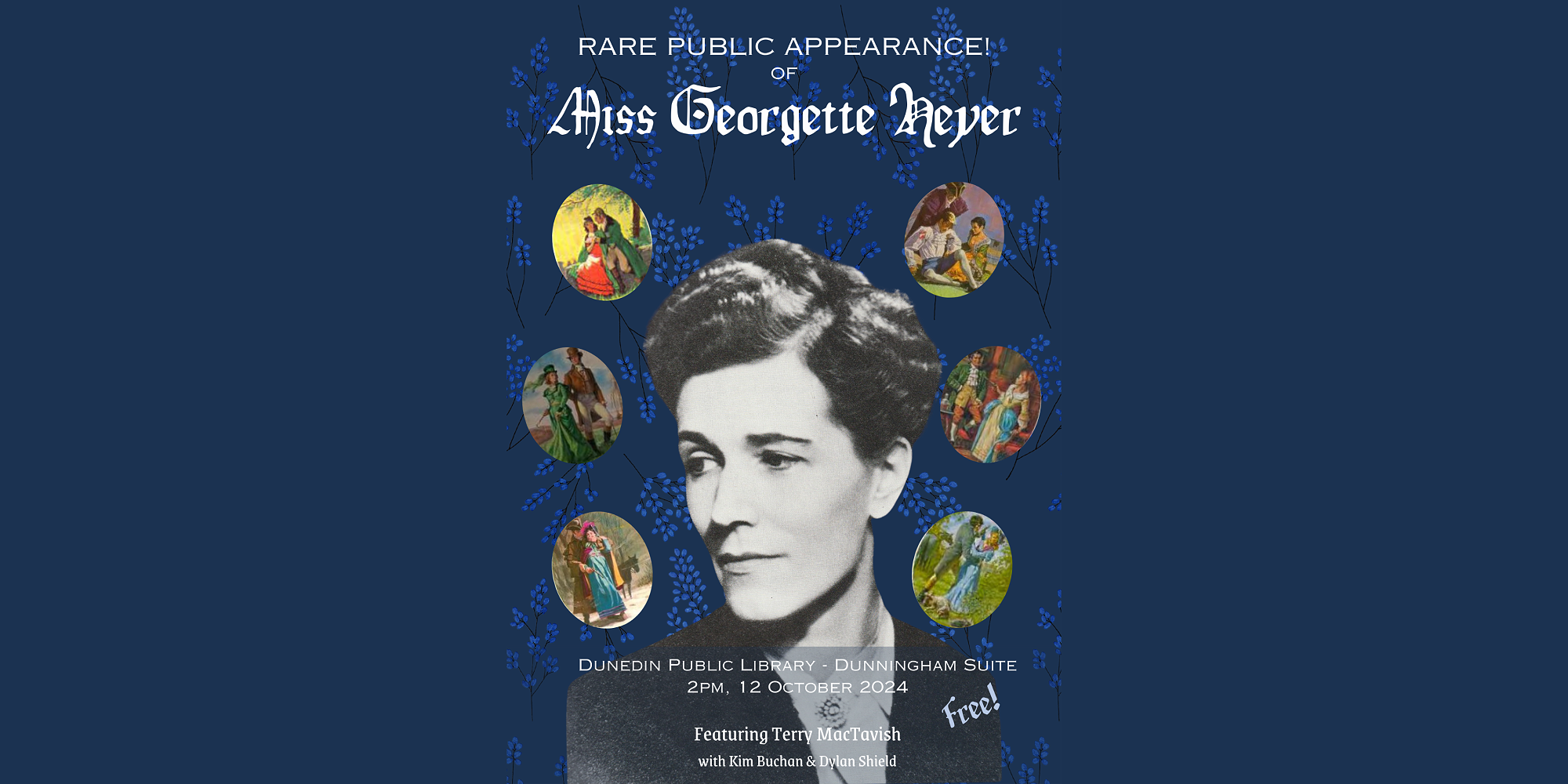 Join Miss Georgette Heyer (1902-1974) for an extremely rare appearance at Dunedin Public Libraries!