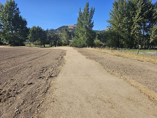Our bike track is ready for its official opening! Kirsten McCrostie was sowing the last of the grass seed this morning.