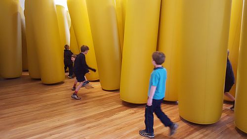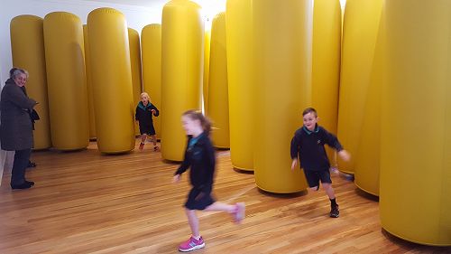 On Friday 8 September Room 7 headed off to the Art Gallery to work with John Numegen (the Art Gallery's art teacher). Our focus was on Maori Korowai (cloaks). We had fun exploring a range of different art works at the Gallery and John told us stories related to the pictures and linked them with traditional Maori legends. Along the way we visited an installation where the children were able to play hide and seek, which was pretty special.