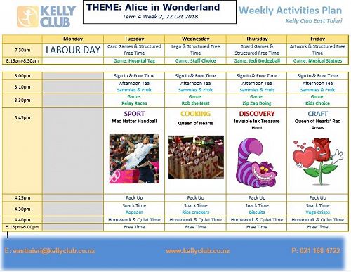 Supervisor: Amanda - Mobile: 021 168 4722 Email: easttaieri@kellyclub.co.nz