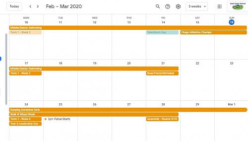 Calendar on the Website: http://easttaieri.school.nz/blog/calendar/