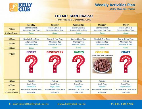 Supervisor: Amanda - Mobile: 021 168 4722 Email: easttaieri@kellyclub.co.nz