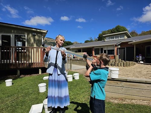 Kiwiana Enviroschools meet every Wednesday afternoon during Term 1. We are excited to discover ways to care for our environment including the creek that runs through our school. Last week, Craig Simpson, from Otago Landcare shared some time with us to talk about the health of our stream. He had applied for funding to purchase water testing kits that assess the clarity of the creek water. We are pleased to announce that he successfully received funding and was able to purchase four water testing tubes. We used them for the first time on Wednesday.