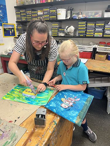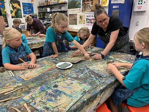 Over the last few weeks, all the children have enjoyed a trip to the Dunedin Public Art Gallery. A huge thank you to the helpers who came with the children. Libbi Caskey (the Gallery's Art Educator) focused on stories from our local area. After a tour of the gallery, the children were taken to the art room to create a piece of art based on our local history.