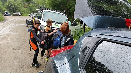 We arrived at school early and had to change into our wetsuits before we left, as it was quite wet outside. Once we were ready Mr Thorn told us which car we would be travelling in and got a free lift to the Outram Glen.