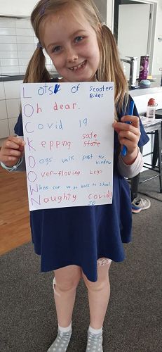 Our daily zoom meetings have been a highlight and we have enjoyed a pet day, a pyjama day, funky Friday dress up, scavenger hunts, bingo, memory games, drawing on paper balanced on our heads, would you rather and a minute to win it - to name just a few! We have enjoyed visits from special guests- a big thanks to Mrs Horgan, Mrs Casey, our brothers and sisters, Amy and her children!