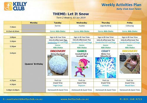 Supervisor: Amanda - Mobile: 021 168 4722 Email: easttaieri@kellyclub.co.nz