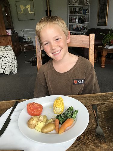 Here is a photo of Charlie with his dinner. Everything on his plate is straight out of the East Taieri School garden! A big thank you to Mrs King for your passion and hard work. You are certainly creating some green fingered students!