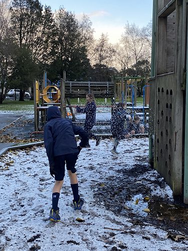 Splat I hit Sophia square in the back. It was boys versus girls and it was even. I could feel the icy snow freeze my hands into ice cubes, as I molded the giant snowball. I took aim and hit Olivia but not quite on target, it hit her straight in the neck. “Oooh,” said Felix “That might have hurt.” I could smell the dirty ice as I snuck up to the girls' base. Then out of nowhere from up on the fort, someone dumped a cone filled with snow right on my head! I could feel myself screaming with the pain of the cold. “Arrrrhhhh!” At the time I didn’t even know who or what hit me and I dropped the snowball I was going to use in my stealth attack. I just ran for my life! Then Miss Clague said, “It’s time to go back to class.” I didn’t even get revenge on the girl who got me. When we all got back inside Evelyn told me it was her that tipped the cone on me.