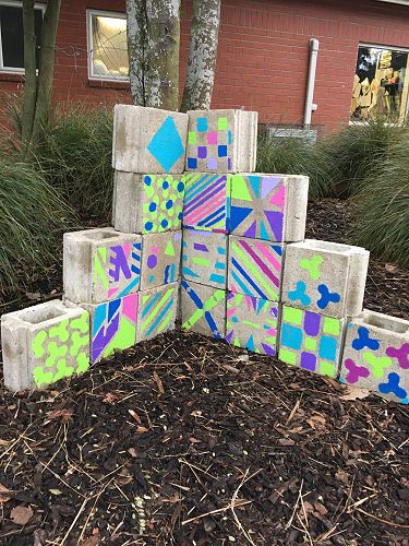 A group of senior students have had a wonderful time creating stencils and then using these to paint patterns onto concrete blocks. They are very proud of their designs. These blocks have been arranged to create a new art installation in our garden and also house plants. We hope you take time to admire these next time you visit school.