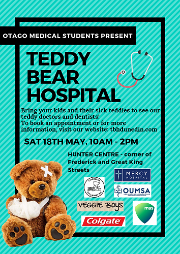 Teddy Bear Hospital is a free event which is really popular each year, so bookings are essential! Consultations can be booked by visiting our website: https://tbhdunedin.com/