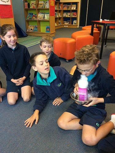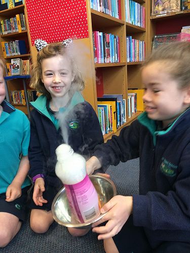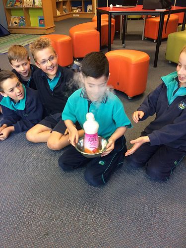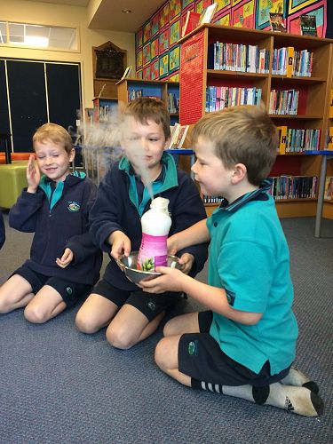 Amadeo from Otago Museum came to school last week to work with the Science Kiwiana kids. Every Thursday this term we have been learning about the Periodic table, elements and atoms. Amadeo was able to extend this learning even further through a range of exciting experiments.