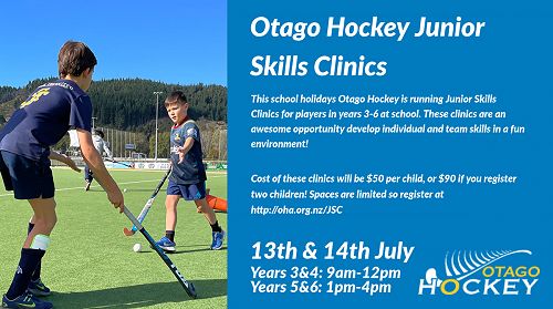 This school holidays Otago Hockey is running Junior Skills Clinics for players in years 3-6 at school. These clinics are an awesome opportunity develop individual and team skills in a fun environment!