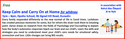 Wednesday 17 March from 7-8pm Opoho School, 96 Signal Hill Road, Dunedin.