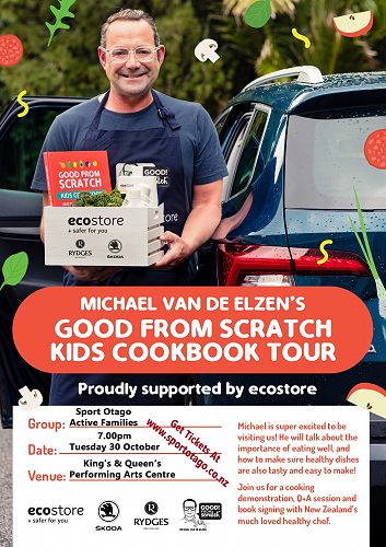 Sport Otago is hosting Michael Van de Elzen, celebrity chef, on the 30th of October for a cooking demonstration and book signing. It would be great if you could promote this in your newsletters or around your school. Please find a blurb below outlining all of the details and a flyer attached.