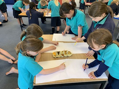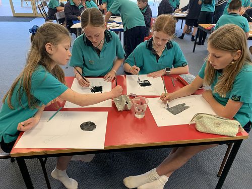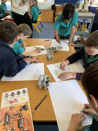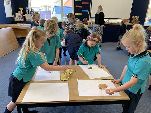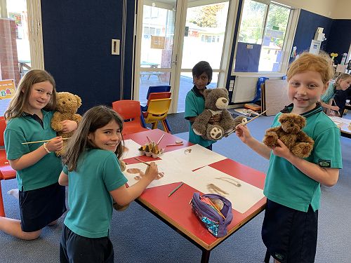 On Friday all children were treated to an art lesson with Cheryl from the Cave Art Studio. Children in Years 1-4 drew Teddy Bears using circles, ovals, and 'sausages'. They then painted them to make the bears look big and fluffy! Year 5-6 children drew robots and used black and white paint to paint them. The focus was on shading to give a 3D effect. Cheryl is a trained teacher who runs her own art studio for children in Mosgiel. She has a few places available for her holiday programme. If you are interested please contact Cheryl Pearson at thecaveartstudio@xtra.co.nz