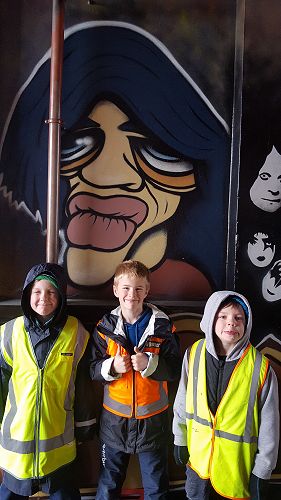 Today Room 7 headed to Dunedin to explore the amazing street art. We met at Queens Gardens and set off to explore the wide variety of street art on the buildings. The weather was chilly but that didn't deter us. After we had finished exploring the art we had a delicious lunch of a pizza and an ice cream at Vogel Street Kitchen before heading back to school.