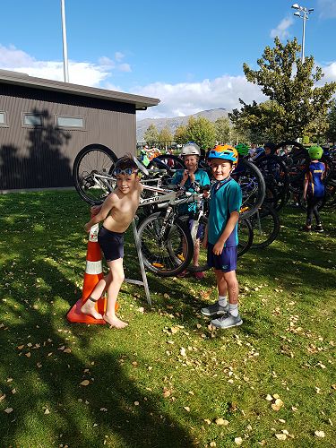 Our young teams had to take on the strength and prior knowledge of the course that the Central Otago children had. They showed that sheer grit and determination was the winning factor as each discipline was completed. Our runners - Ruby Jones and Zac Cunningham left everything out on the course coming in off the run course in amongst the front runners. Hot on Zacs heels was Joel Bain from our other boys team too, a great run by Joel. Onto the bike went Brady Connelly and Sophie Thode for the top teams and they rode like the wind around the roads of Cromwell coming back in amongst the pack of lots of riders from all different age groups and individuals. It was very hard to tell at this stage how we were going. Off the bikes, tagging their team mates and into the pool went Matthew and Jessica Hanna. They both went into the pool reasonably close together and had a great race in the pool passing others and coming out the other end very weary looking, also having left everything in the pool.