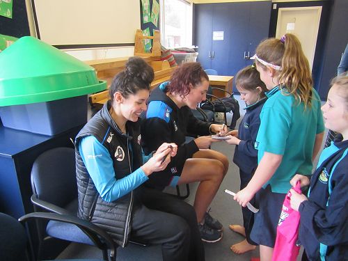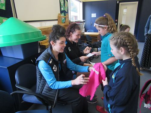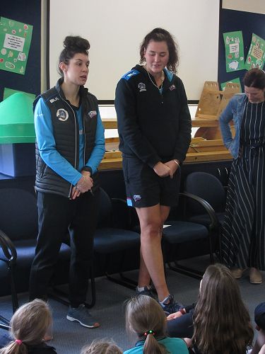 Steel players Jen O’Connell and Dani Gray visited the school today, answering lots of questions, signing some autographs and then spending some time on netball skills with a few lucky netball players. A big thank you to Glenda Bateup, who won the visit as part of a recent competition.