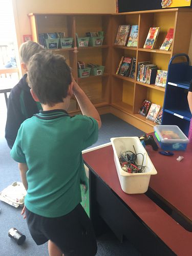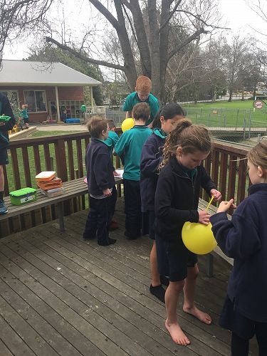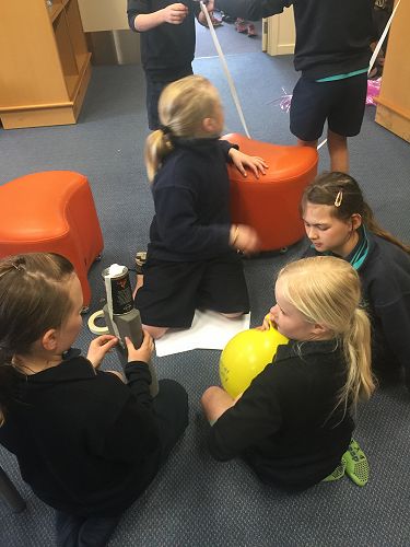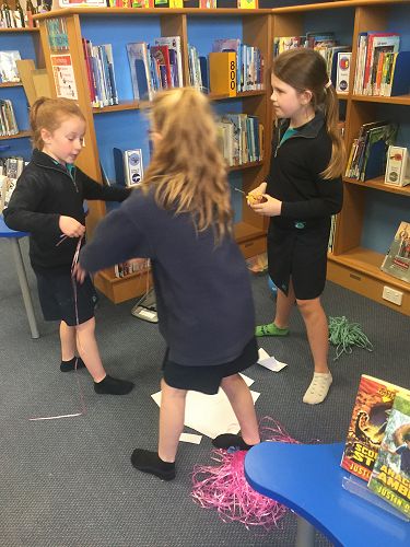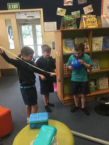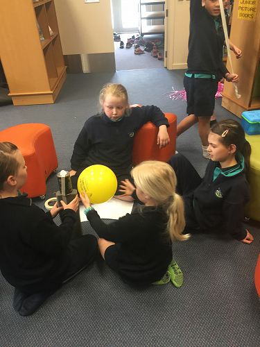 During the last 2 weeks of Term 3, a number of children took part in a challenge, designed to test their collaborative, thinking and creative skills. This challenge was held during a lunch hour and over 50 children turned up. The children organised themselves into teams of 3 or 4 and had to complete a set task in a specific time frame. For this task the groups had to make a device to send a satellite in the air for a specific period of time. The satellite then had to detach from the thing that had sent it into the air (for most groups this was a balloon).
