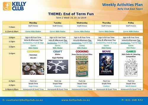 Supervisor: Amanda - Mobile: 021 168 4722 Email: easttaieri@kellyclub.co.nz