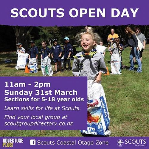 Scout Groups in Otago will be holding an Open Day on Sunday 31st March, from 11am - 2pm at all local scout groups.