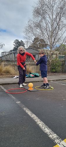 Everyone had a turn with the big ball, tennis ball and the actual golf ball. The golf cut into morning tea a bit, but we didn't mind because we got extra play because of it. When we finished golf we went back to the red flag and thanked Melanie for her time. As we walked back we were filled with joy while we continued on with our day.
