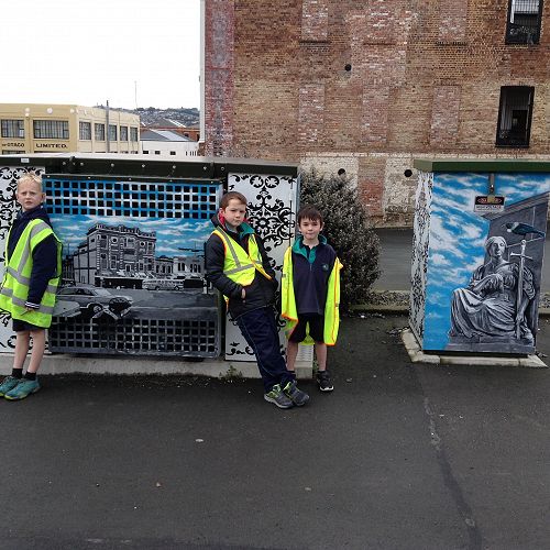 On Wednesday as part of our 'Colour My World' Art Inquiry, Room 8 explored some of fantastic street art on display around Dunedin. It was a great opportunity to explore Dunedin and find some 'hidden gems' that you wouldn't normally see when driving around. We finished our tour with a delicious lunch at Vogel Street Kitchen as a special treat. A huge thank you to the parents who accompanied us on our trip.