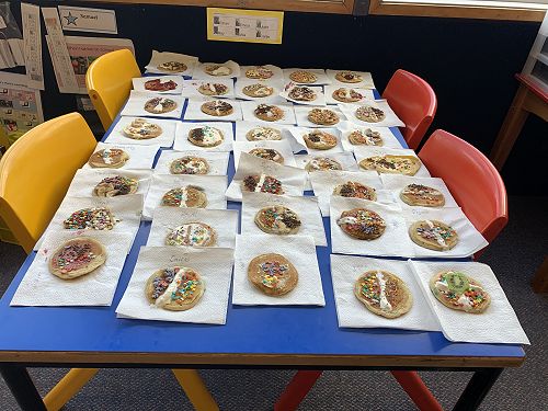 Last Friday Rooms 5 and 6 had a Fun Fractions morning. The children came dressed a fraction (eg 1/2 yellow, 1/2 black). Activities included playdough fractions, using Scratch Junior on the iPads, lego fractions, colour by fractions pictures and creating pictures using blocks and fractions. The most popular activity was decorating pikelets with a variety of toppings to represent a fraction. The ultimate highlight of the morning was eating them!