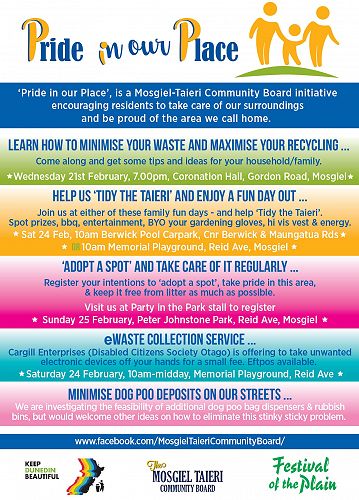 'Pride in our Place,' is a Mosgiel-Taieri Community Board initiative encouraging residents to take care of our surroundings and be proud of the area we call home.