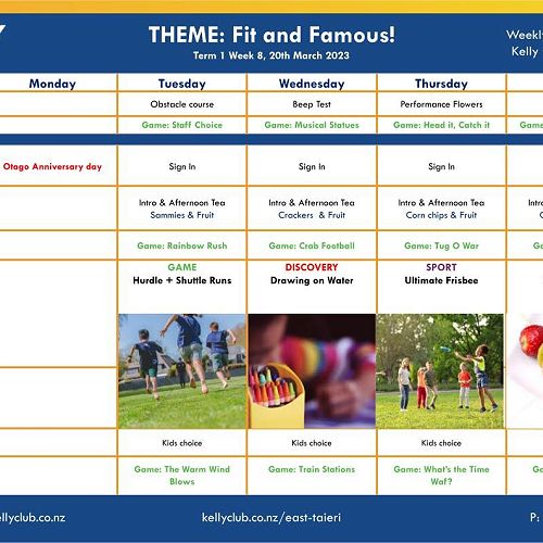 Visit this articleBefore & After School Care: Kelly Club East Taieri run the before and after school care programme in the Owhiro Centre at East Taieri School. Our after school care programme is focused around art and craft, cooking, sports and games, and discovery time/science type activities. Children are provided with a variety of afternoon tea options such as sandwiches, crackers, cookies, muffins and fresh fruit and vegetables . Call in and meet our friendly staff anytime during our programme hours. Before school 7.30 - 8.30am Afterschool 3.00 - 4.30pm Afterschool 3.00 - 5.30pm For more information or to book online create a profile at www.kellyclub.co.nz/east-taieri See what we are up to on Facebook @KellyClubEastTaieri Supervisor: Mobile: 021 168 4722 Email: easttaieri@kellyclub.co.nz