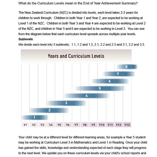 Visit this articleWhat do the Curriculum Levels mean in the End of Year Achievement Summary?