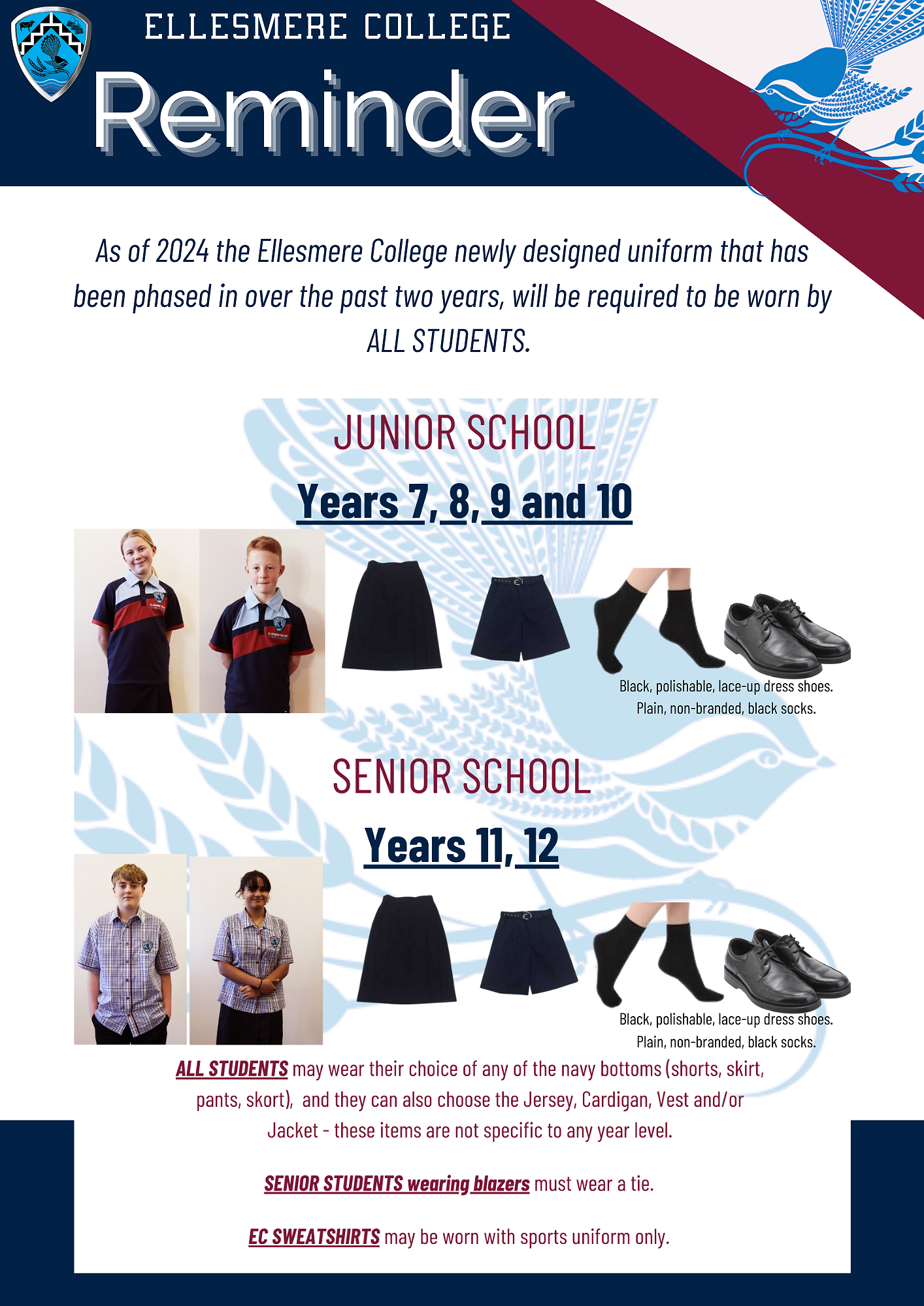In 2024 our new uniform is compulsory for ALL YEAR LEVELS.