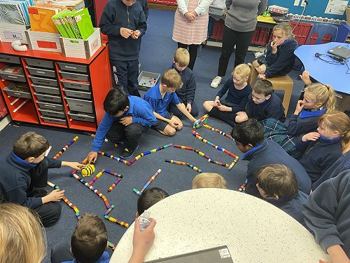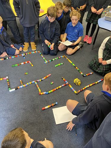 Finally, program the Bee-bot robots to complete the maze.