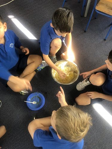 We visited the New Zealand flag in the school grounds and lay the wreaths while singing the National Anthem. We enjoyed making delicious ANZAC biscuits, created our own medals and drew soldiers.