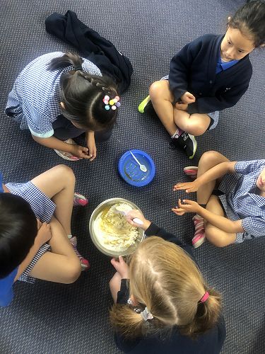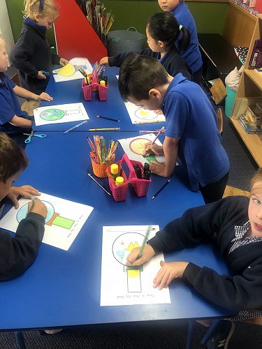 We started the morning with the book ‘Dawn Parade’, learning about this important event that many participate in on ANZAC Day. We listened to the Last Post and read stories about ANZAC. Each class made a wreath using our handprints to lay on the school memorial.