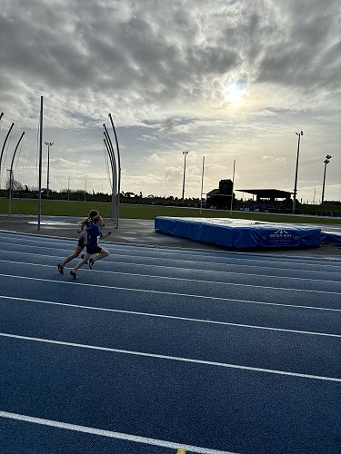 At the start of the race, our legs were shaking from nerves. We were in a huge crowd of girls racing our 2km race. The race started and all of a sudden everyone took off at a lightning pace. There were a few screams due to the water puddles but it didn’t take long before everyone got used to it. Soon everyone spread out and the pace slowed a little bit but was still very quick. We finished the race on the track. Louise came in second place and was running neck and neck with a student from another school. They finished 1 second apart! All the races were great to watch and it was a good experience to be a part of.