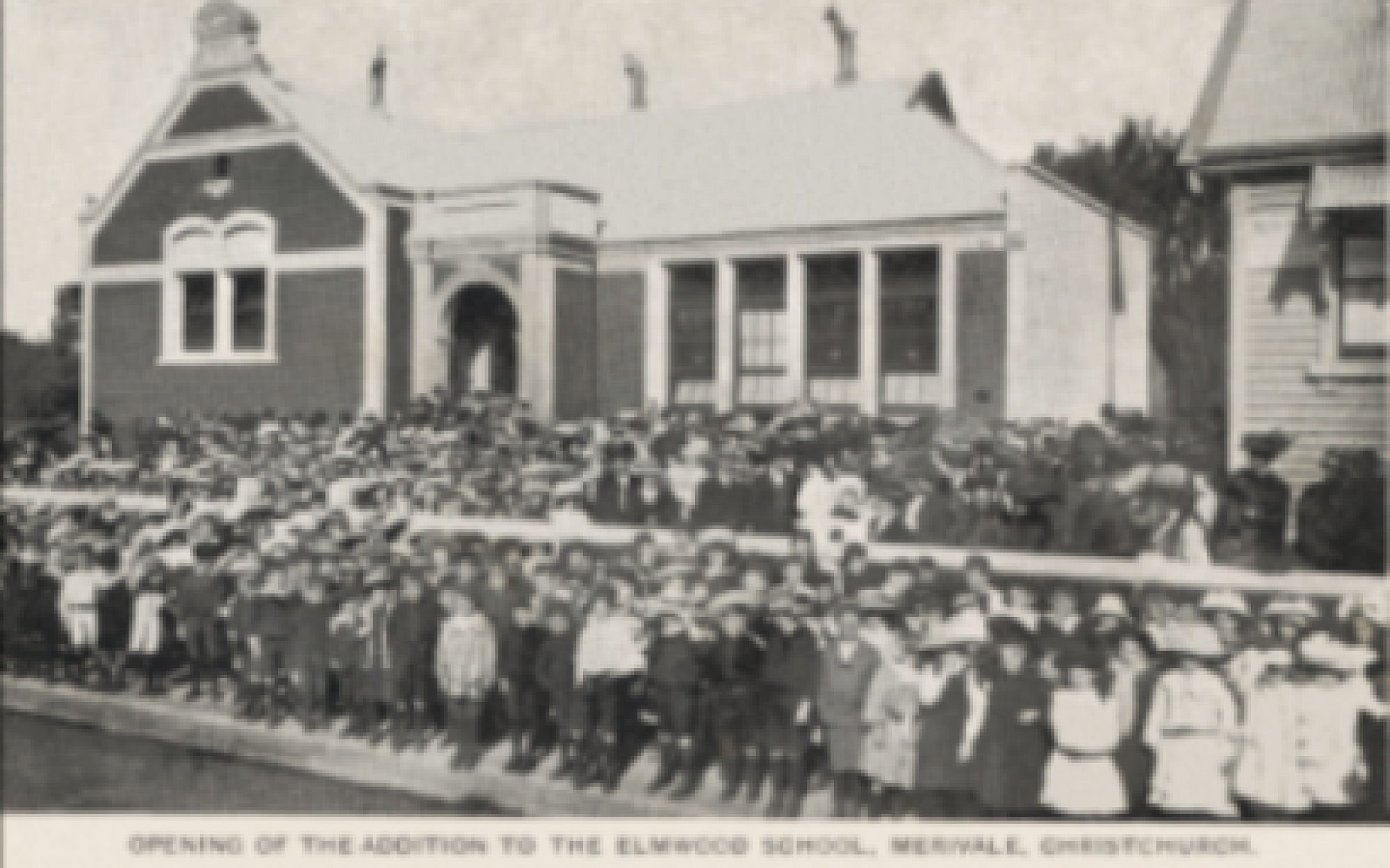The name `Elmwood’ is thought to have been chosen for the new school after Sir Robert Heaton Rhodes family home. Elmwood house was built in the early 1860’s and named after the English elm trees (erema) growing along its Papanui Road boundary.