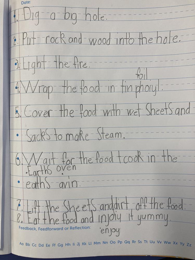As part of our learning connected to our hangi we wrote instructions for Mr Armitage to follow - we learnt that when writing instructions you need to start with a ‘bossy’ word or a ‘verb’. Check out all our ‘bossy’ words that we put at the start of our instructions for Mr Armitage to follow.