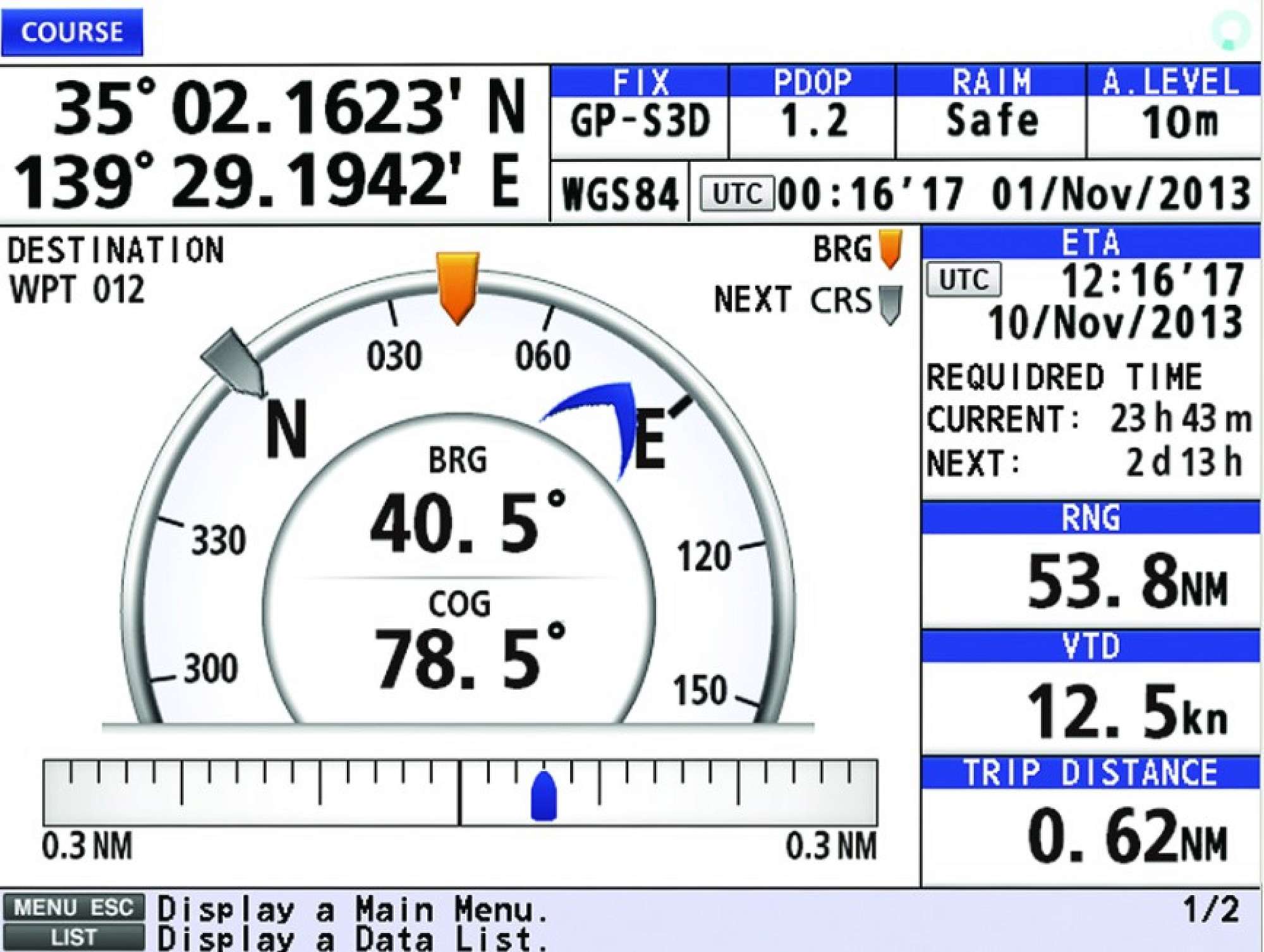 The GP170 is BAM (Bridge Alert Management) ready and boasts a variety of display modes, including Plotter, Course, Highway, Data and Integrity. The Integrity display mode delivers a highly accurate Skyplot presentation of currently viewable satellites, status on GNSS/SBAS signal reception including strength and SNR, and elevation angles of available satellites, as well as detailed information about available beacon stations.