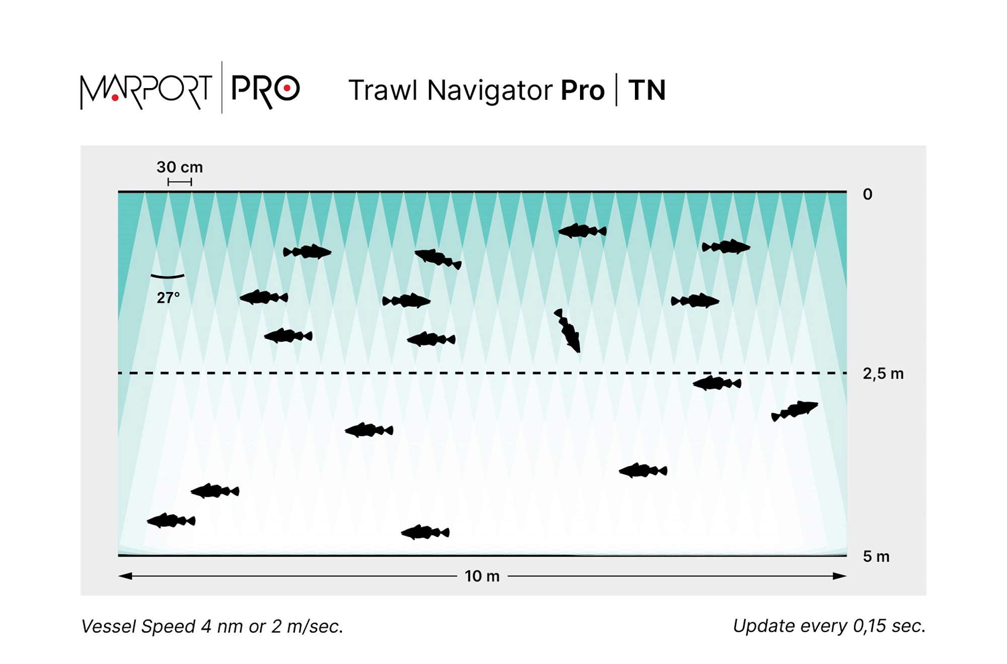Marport Trawl Navigator Pro (TN-155-W) is a high-definition net sounder, designed to operate on the trawl headline. It does not replace Trawl Explorer (TE-155-W), it is a new addition to Marport's extensive sensor range.