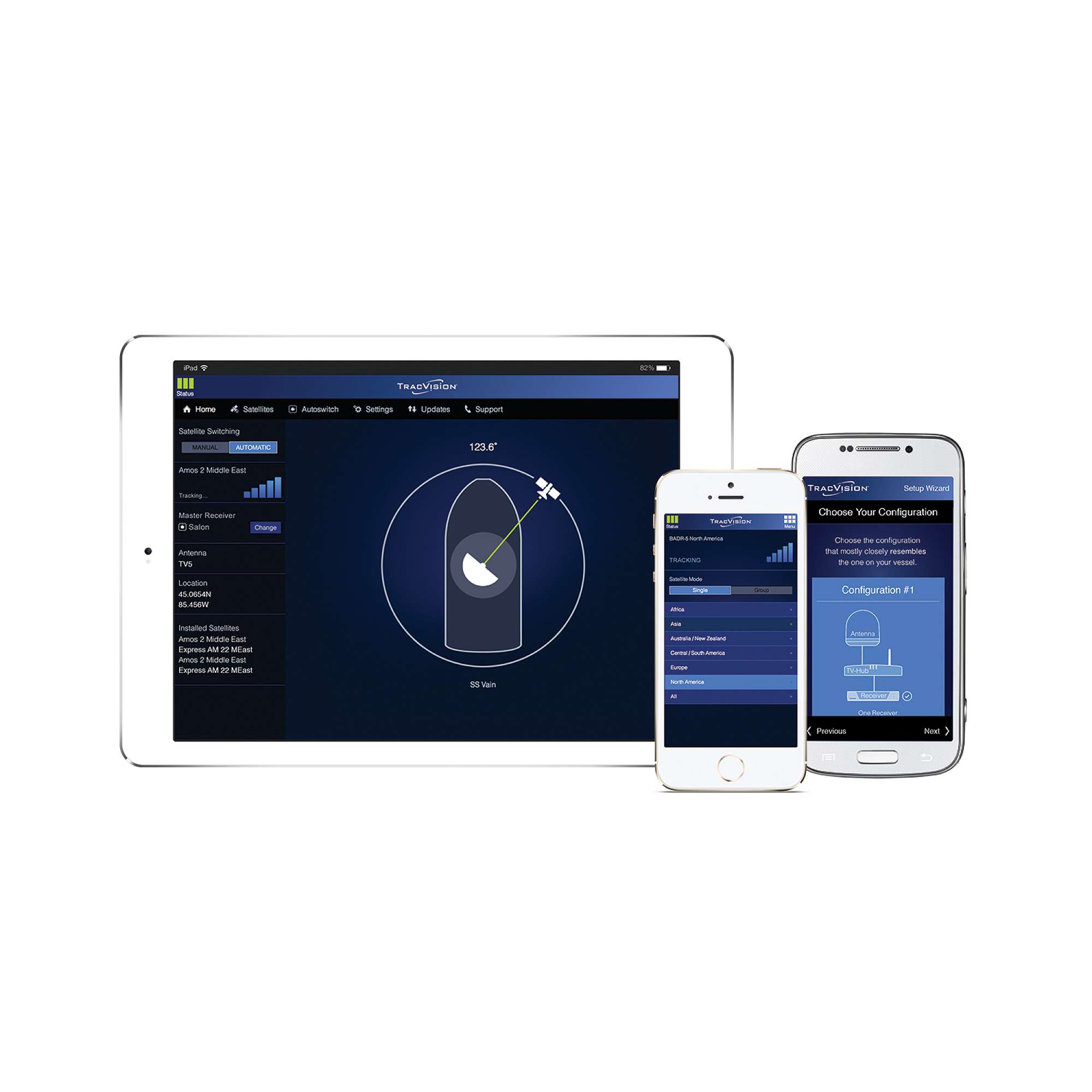 - Easy setup and system control with KVH’s exclusive TracVision app for iOS,® iPadOS,® and Android™