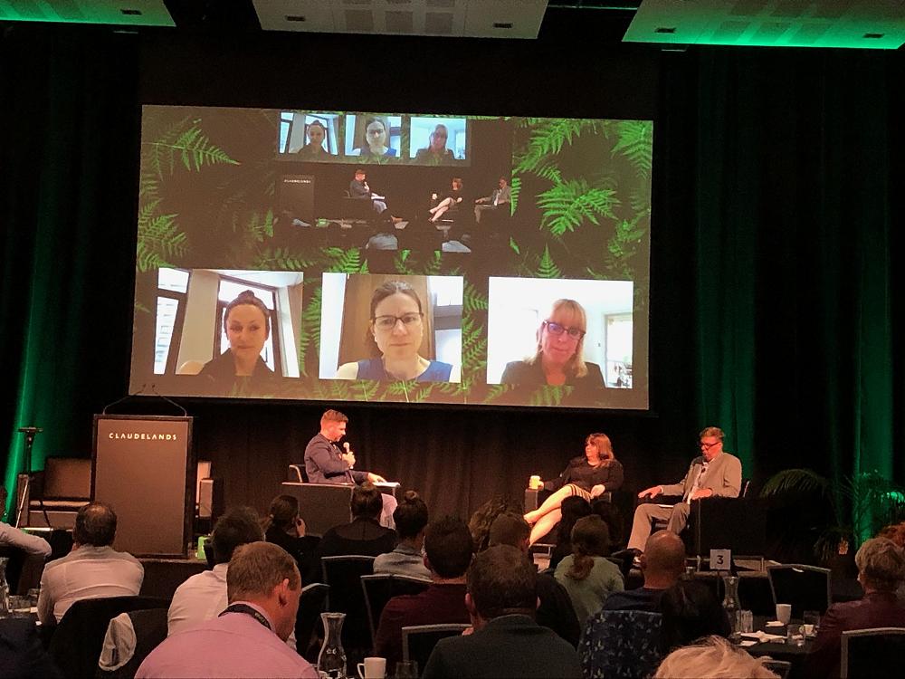 Here's the Coping With COVID-19 panel in session. Facilitated by EVANZ Board Member Mark Mekalick with Mark Gosling and Lisa Hopkins (CEO of CINZ) live on stage. The format meant that Lisa Gibson (MBIE Major Events), Libby Clifford (COVID-19 All of Government Response Group) and Dr Harriette Carr (Deputy Director of Public Health) were also able to participate.