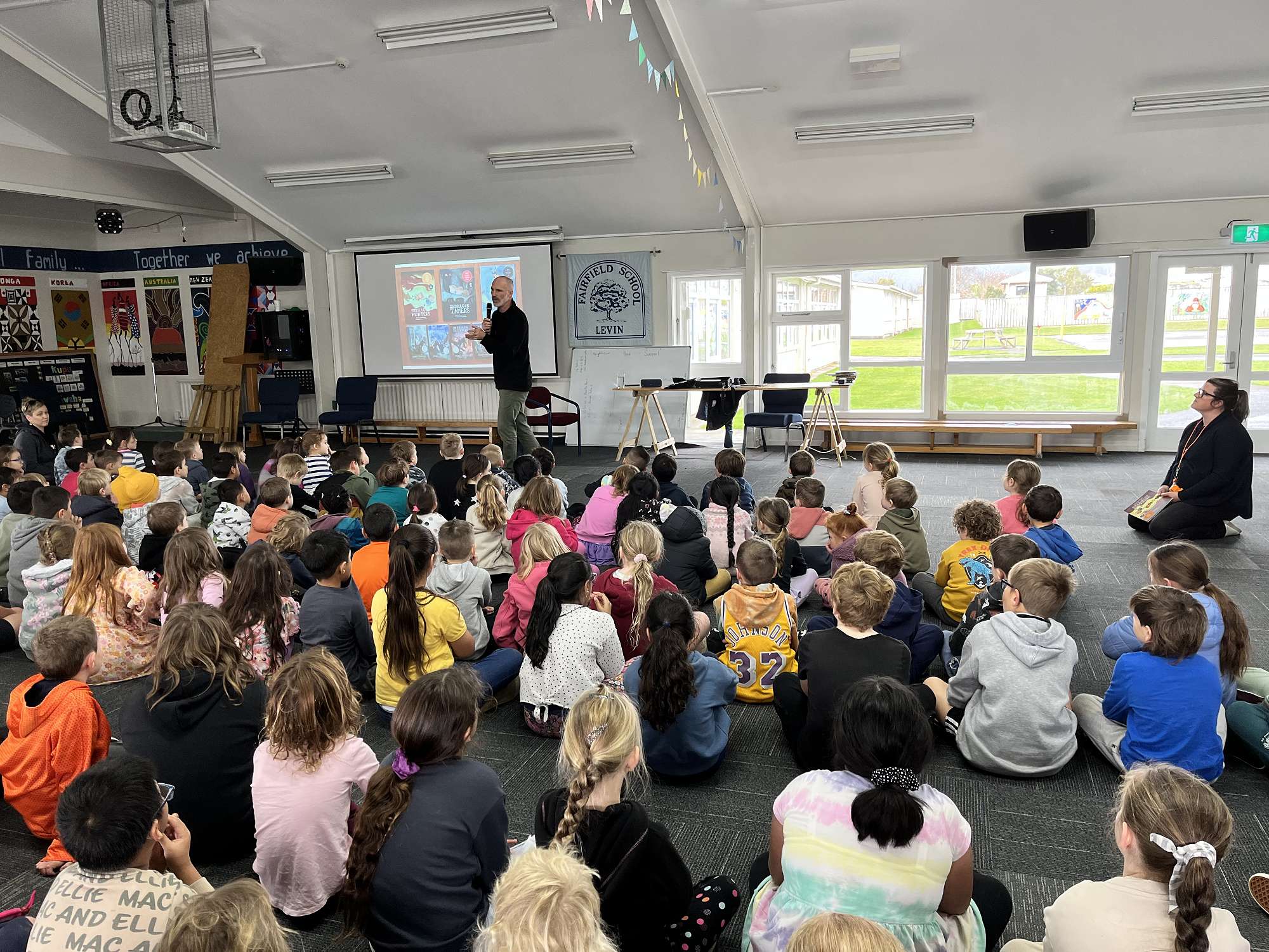 We had the privilege of having author James Russell, who is touring with Storylines, visit our kura. James captured the students' imagination as he brought his books to life. James is also very entertaining; the students were in stitches, laughing! Younger children enjoyed The Dragon Hunters series while our older readers discovered the chapter books - Dragon Defenders.