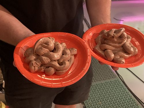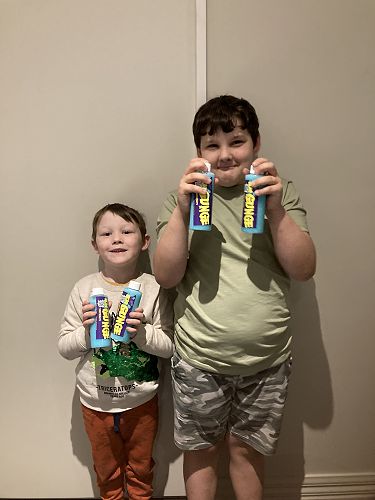 Mason and Noah both got to play two games. The first was 'whos poos are whos?' as they had farmyard animals there and they had to match the flashcard with the poo. If they got it wrong (which I think they were hoping to!) they got a 'cow pat' to the face. The second game was 'the early bird catches the worm' where they had to fish (gummy) worms out of 'dirt' without using their hands. After the game Noah chose to gunge Mason which was the thing they had looked forward to the most! They had the best time!