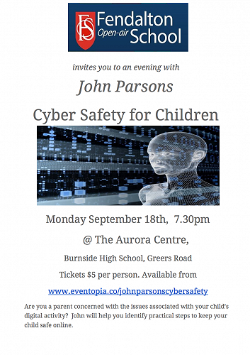 John is a leading expert on this subject and is coming to Chistchurch to talk with all the schools in our area. He will be at our school working with students and teachers on the same day. This evening talk is for parents and will give practical steps on how to keep kids safe in the digital world. Click this link to buy a $5 ticket and see the poster below.