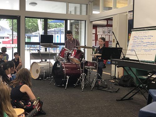 Many thanks to their teachers, Andrew Marra (guitar and ukulele), Santiago Samonta (guitar and ukulele), Cameron Finlay (drums), Nicola Smith (violin), Naomi Harmer (cello) and Danielle Skjellerup, Iain Brandram-Adams, Yoomia Sim (piano).