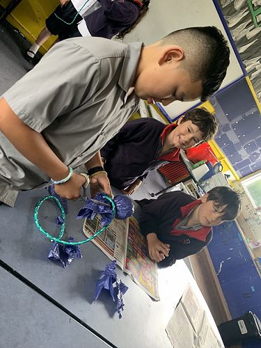 At whānau time this week, the seniors made poi toa. These were traditionally used to build strength for combat and used for target practice to develop accuracy. These days we use them in PE for tag games and also hand-eye coordination games.