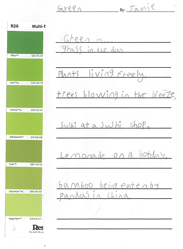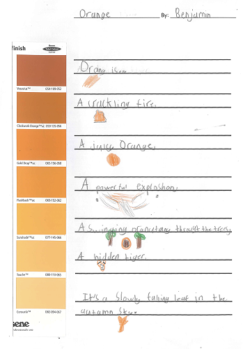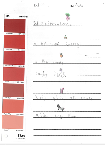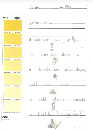 When writing our paint sample poems we talked a lot about metaphors. Metaphors describe something as if it is something else. Our poems look at how colour can be many other things.