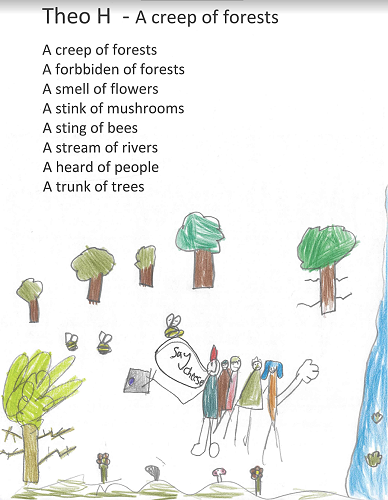 We really enjoyed making up collective nouns for different objects and things that we can find in the playground or forest and turning them into a poem.